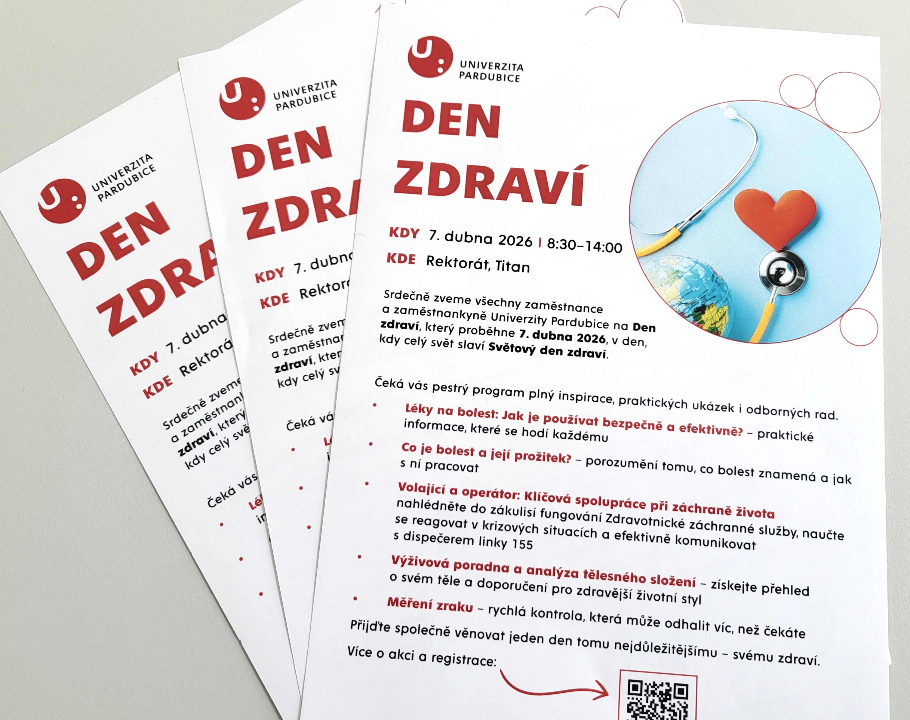 V úterý 7. dubna 2026, v den Světového dne zdraví, se na Univerzitě Pardubice uskutečnila akce Den zdraví, která je součástí dlouhodobé snahy univerzity o podporu zdraví, well-beingu a kvalitních pracovních podmínek zaměstnanců a zaměstnankyň. Akci připravilo Oddělení HR Award ve spolupráci s Fakultou zdravotnických studií a Všeobecnou zdravotní pojišťovnou.