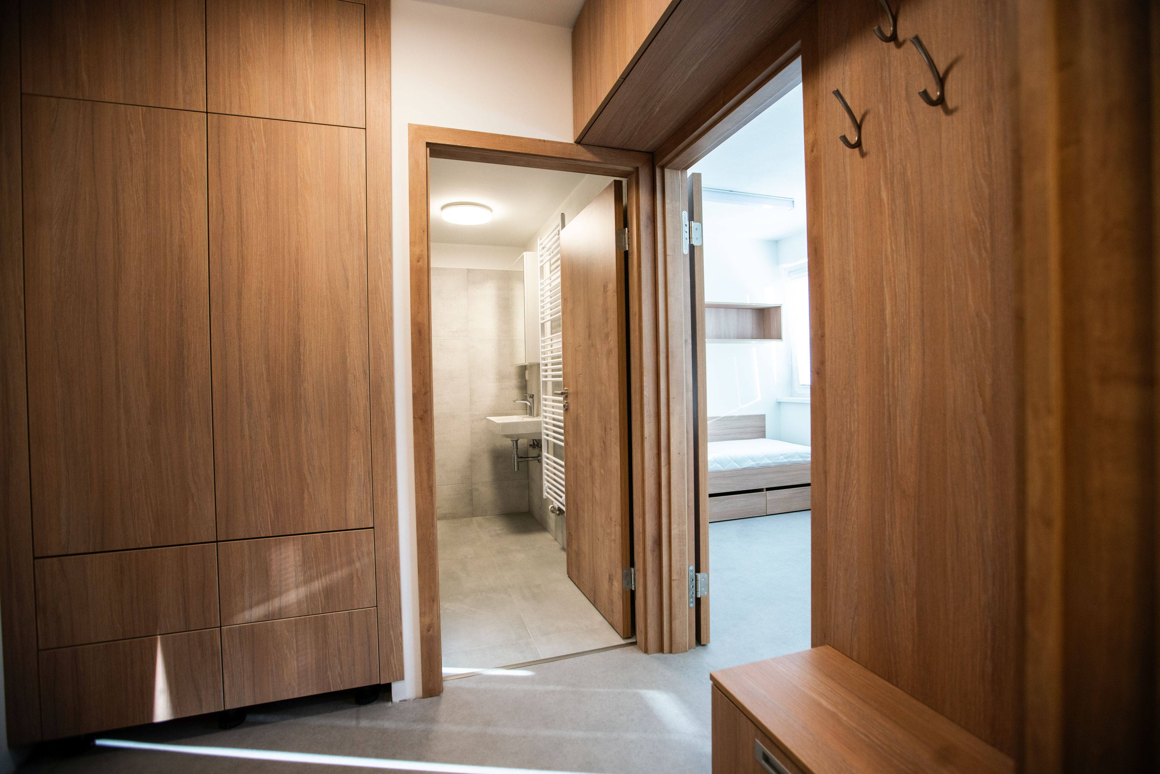 Apartment equipment: 2x bed + bedding + bedlinen, 2x desk + chair, 2x wardrobe, clothes rack, 2x shelf, shoe cabinet, window blinds, fridge, induction cooker (dishes are not included in the equipment), microwave oven, 2x waste bin, brush and dustpan, floor cloth, bucket, broom and toilet cleaner.