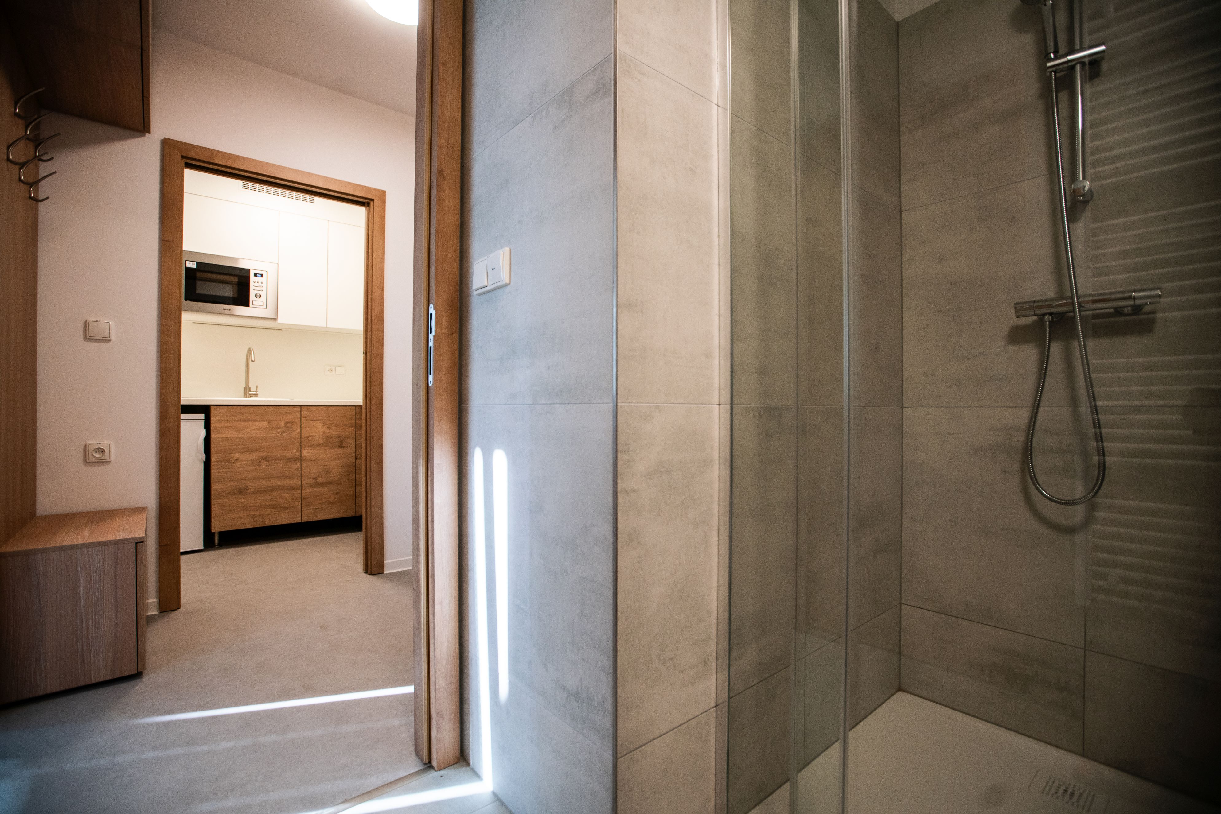 Apartment equipment: bed + bedding + bedlinen, desk + chair, wardrobe, clothes rack, shelf, shoe cabinet, window blinds, fridge, induction cooker (dishes are not included in the equipment), microwave oven, 2x waste bin, brush and dustpan, floor cloth, bucket, broom and toilet cleaner.