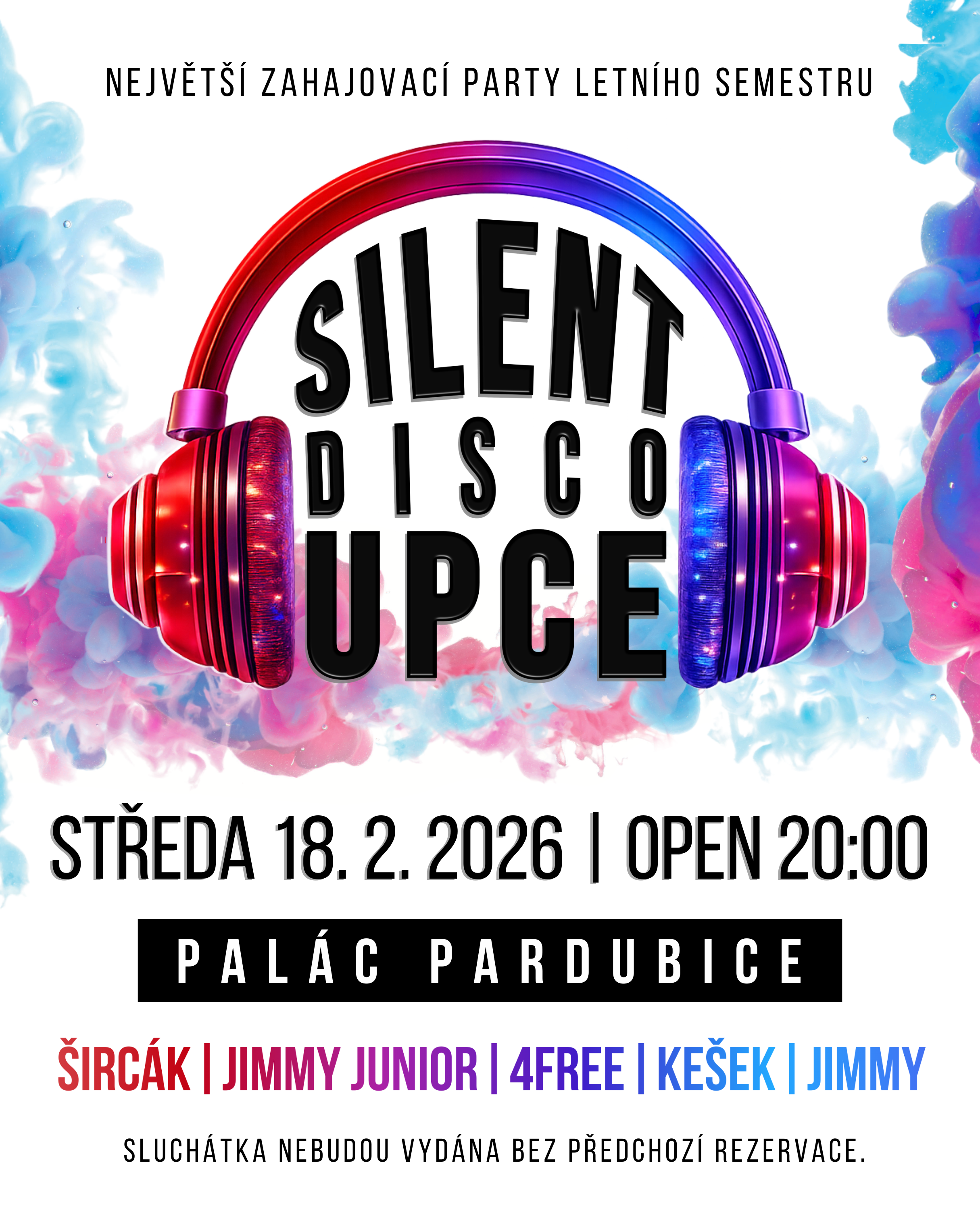 20:00 Silent Disco UPCE – opening party of the summer semester – Palác Pardubice. Click to reserve your headphones