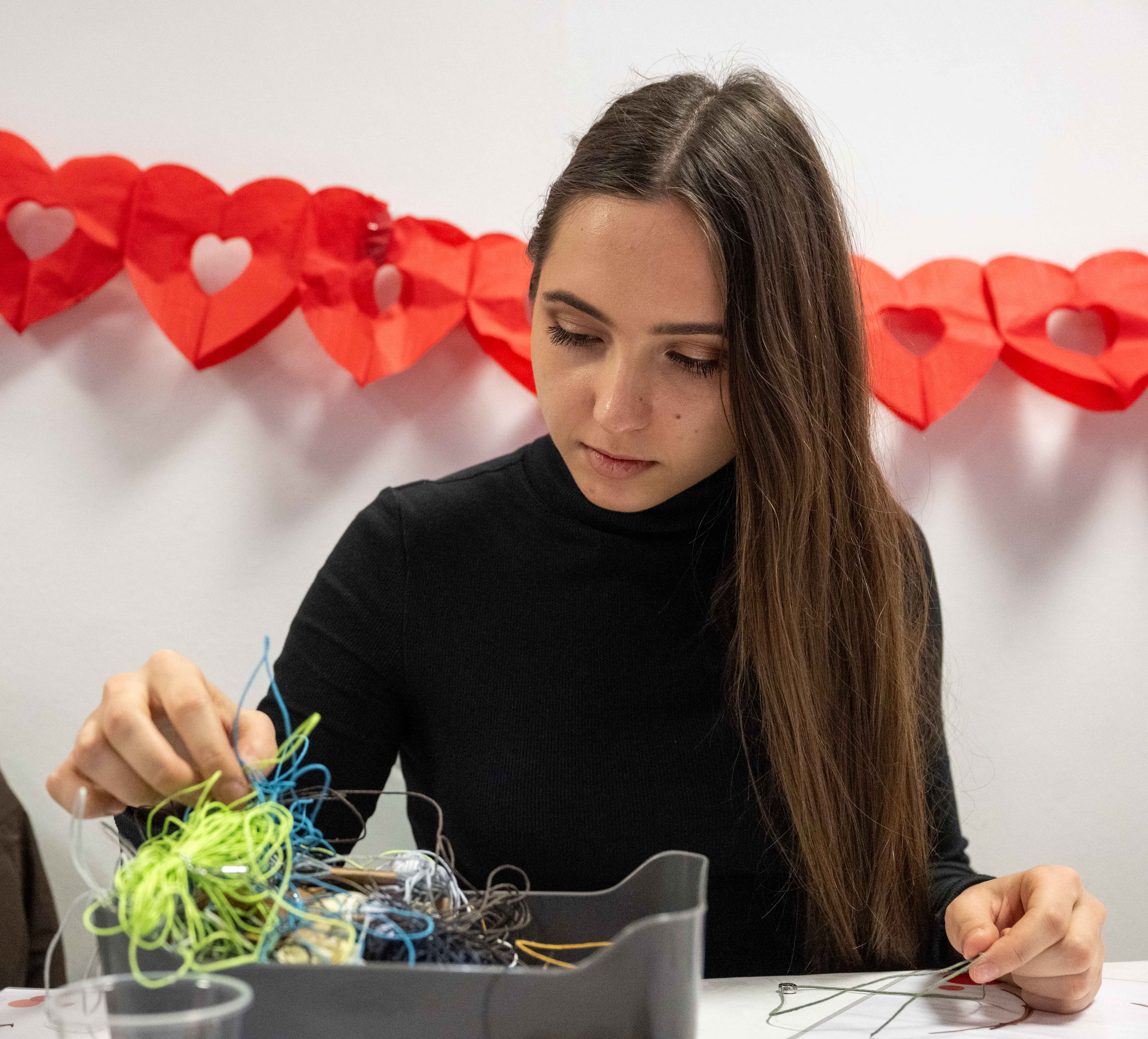 Kreativní duše s námi v pondělí 16. února tvořily originální vouchery pro své blízké, placky a náramky. Hezkou vzpomínku si studující i zaměstnaní odnesli v podobě polaroidové fotky či "tetování" hennou. Valentýnská hlídka obdarovala perníčkem studující, kteří přišli v červeném.