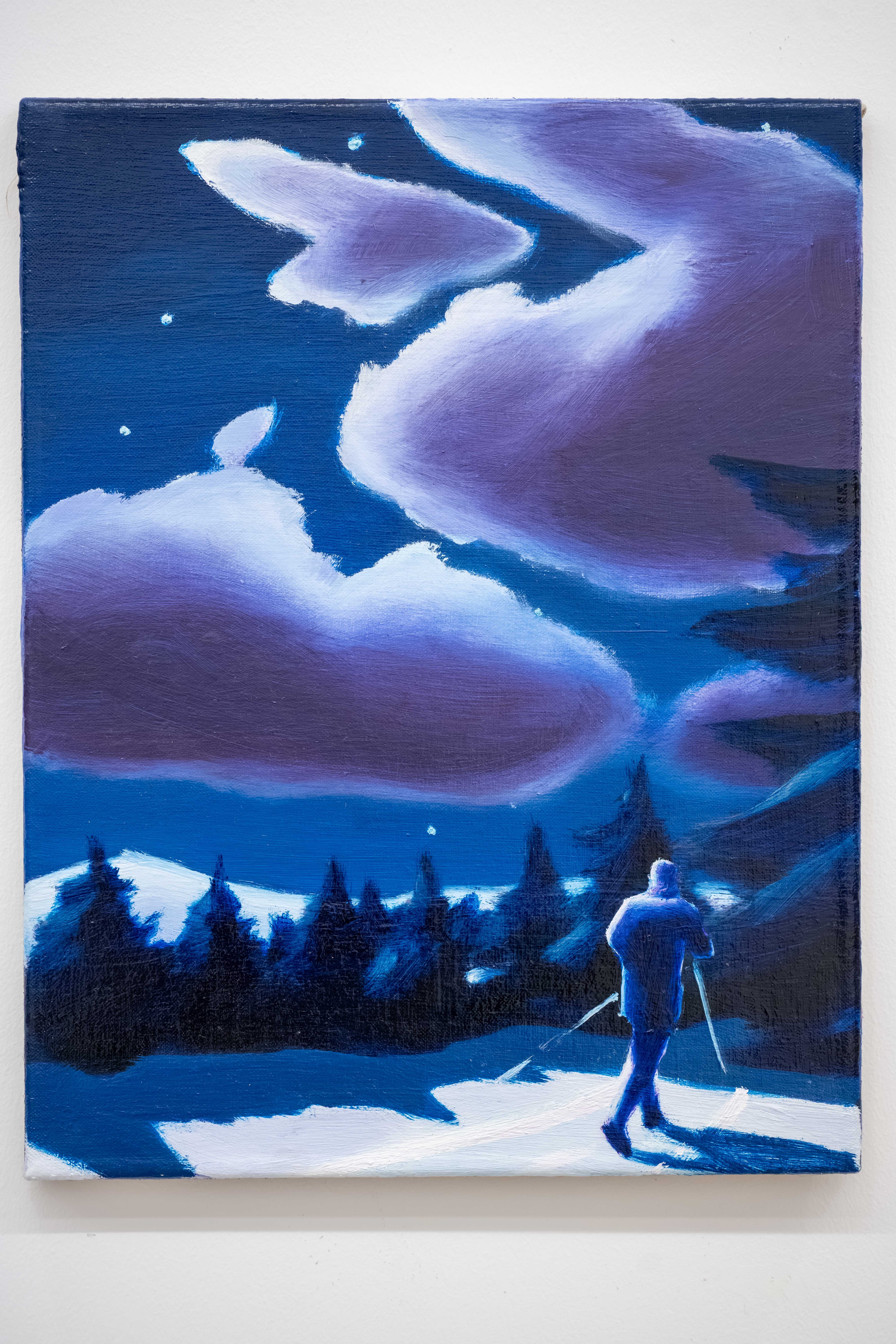 Na ikonickém obraze německého romantického malíře Caspara Davida Friedricha „Poutník nad mořem mlhy“ (1818) stojí na vrcholu hory právě vystoupivší poutník zády k divákovi a pozoruje horstvo zahalené v oparech valících se mlh. Malba nezobrazuje jen přírodu, ale spíše osobu, která přírodu pozoruje, a tematizuje tak samotné „vidění“ a vztah člověka k přírodě. Tento věhlasný romantický výjev jako by se v obrazech Petra Grubera ztělesnil do poněkud přízemnějších pohledů na současnou krajinu, ovšem v neméně romantickém vyznění. Osamocení hrdinové romantismu trávili dlouhé hodiny v panenské přírodě v kontemplaci nad její velkolepostí, tajemností, zšeřelostí. Reflektovali přírodu a jejím často symbolickým významem vyjadřovali subjektivní, emocionální reakci na svět přírody. Gruberovy krajinné pohledy jsou civilní, spektakulární pohledy romantiků jsou nahrazeny intimnějším pohledem na omezený krajinný výsek pouhé tišiny, cesty lesem, omezeným průhledem skrz stromoví. Vidíme průhledy do zasněžených lesů, na opuštěné sjezdovky, stanové tábory nebo chatařské kolonie. Jsou to pohledy důvěrně známé, většinou v podmanivém nasvícení podvečerního světla, kdy slunce již téměř zapadlo a krajina se barví do modrofialových, nebo pastelových okrově narůžovělých tónů. A pokud se v obraze objeví osamělá figura nebo jen její část, zasahující do formátu, téměř výhradně je otočená zády k divákovi, jako by jej vtahovala do výjevu a směřovala jeho pohled na sdílený motiv. Ten je často již jen nepatrně osvícený zapadajícím sluncem nebo z příšeří prosvítajících lamp kdesi mezi stromy s odlesky na sněhu, snad i záblesky neurčitých, právě se rozsvěcujících světel chat nebo ohýnků mezi táborovými stany. Dalo by se rezonovat s Baudelairem: „Kdo praví romantismus, praví umění moderní, to jest intimita, duchovost, barva...vyjádřená všemi prostředky, jimiž umění vládne.“