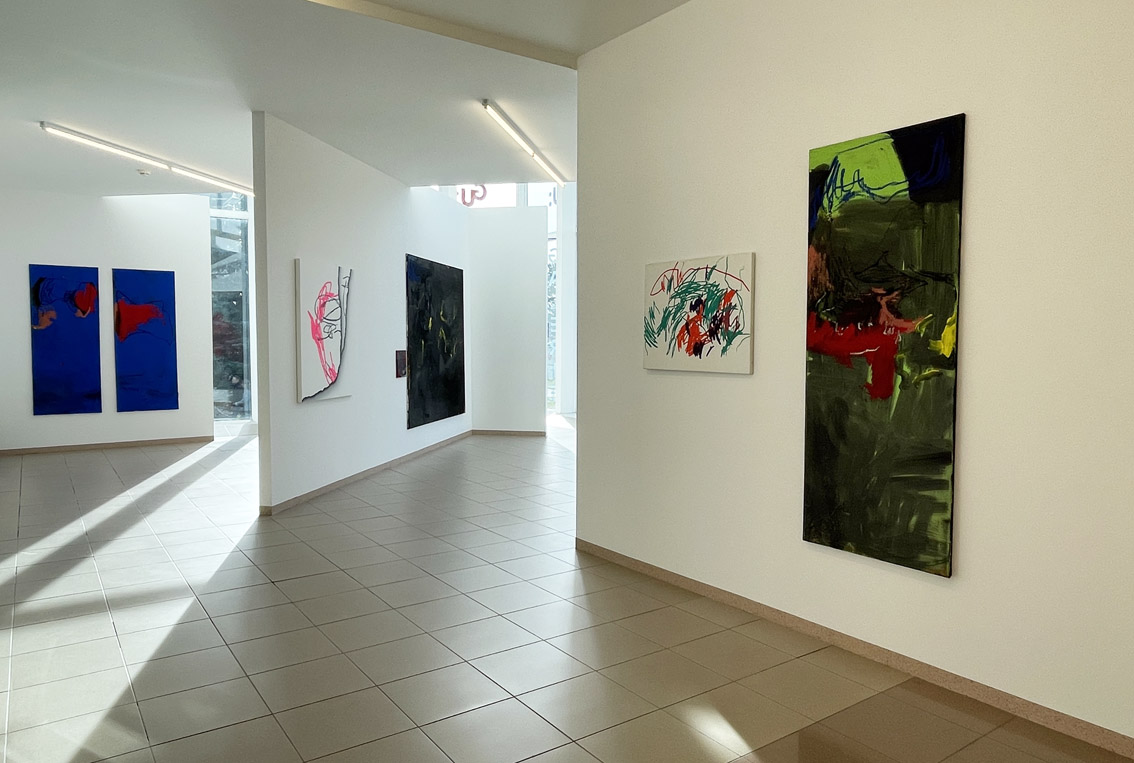 Výstava dvou autorů představuje v dialogu dvě série abstraktních obrazů, které jsou si formálně blízké, jejich konceptuální východisko je však zcela rozdílné. V sérii “Modely” užívá Lahoda matriku jedné z radikálních pozic modernismu, vyjádřenou např. v dílech skupiny Cobra. Jako součást reakce proti akademismu a naučenému, proti omezenému a neosobnímu výrazu, se členové skupiny Cobra inspirovali spontánním výrazem tvorby dětí, aby se tak dostali do stryku s jejich vlastním podvědomím. Tvrzení, že by toto mělo dílům umožnit komunikovat demokraticky a svobodně, se ukázalo jako jedna z modernistických utopií. Lahoda apropriuje spontánní, abstraktní čmáranice své malé dcery, které věrně kopíruje pomalou detailní malbou ve zvětšených formátech a transformuje je na originální obrazy jako metafory „modelů“ abstraktní malby. Série tak nastavuje ironické zrcadlo mýtům o genezi uměleckého díla, o kultu „tahů štětce“ - tomuto uctívání génia a spontaneity umělce vyjádřené v obdivu k tahům štětce, které by měly mít emociální a intelektuální kvality samy o sobě.