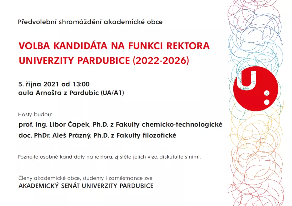 Srdečně zveme na slavnostní inauguraci nového rektora Univerzity Pardubice, prof. Ing. Libora Čapka, Ph.D.,