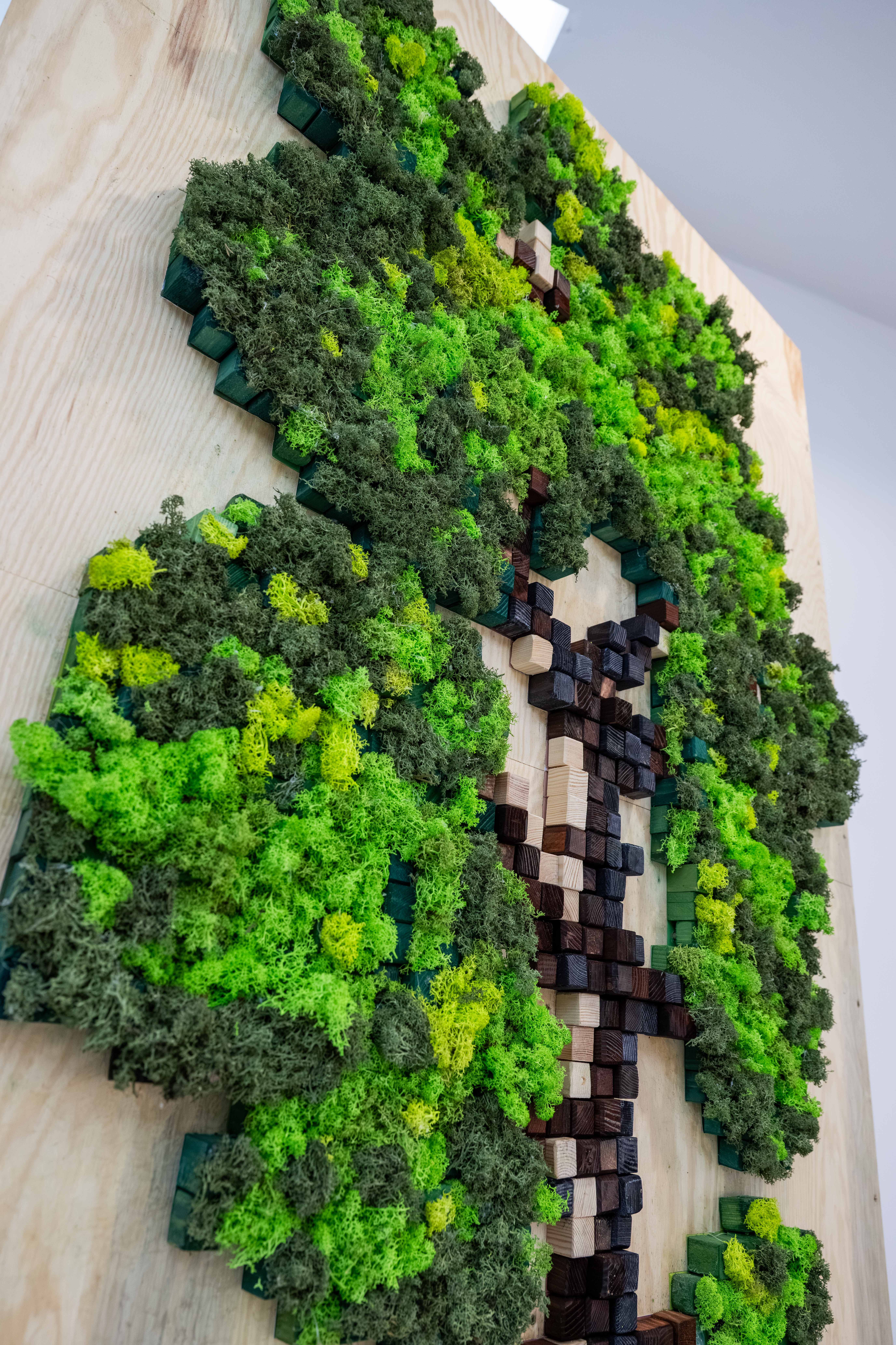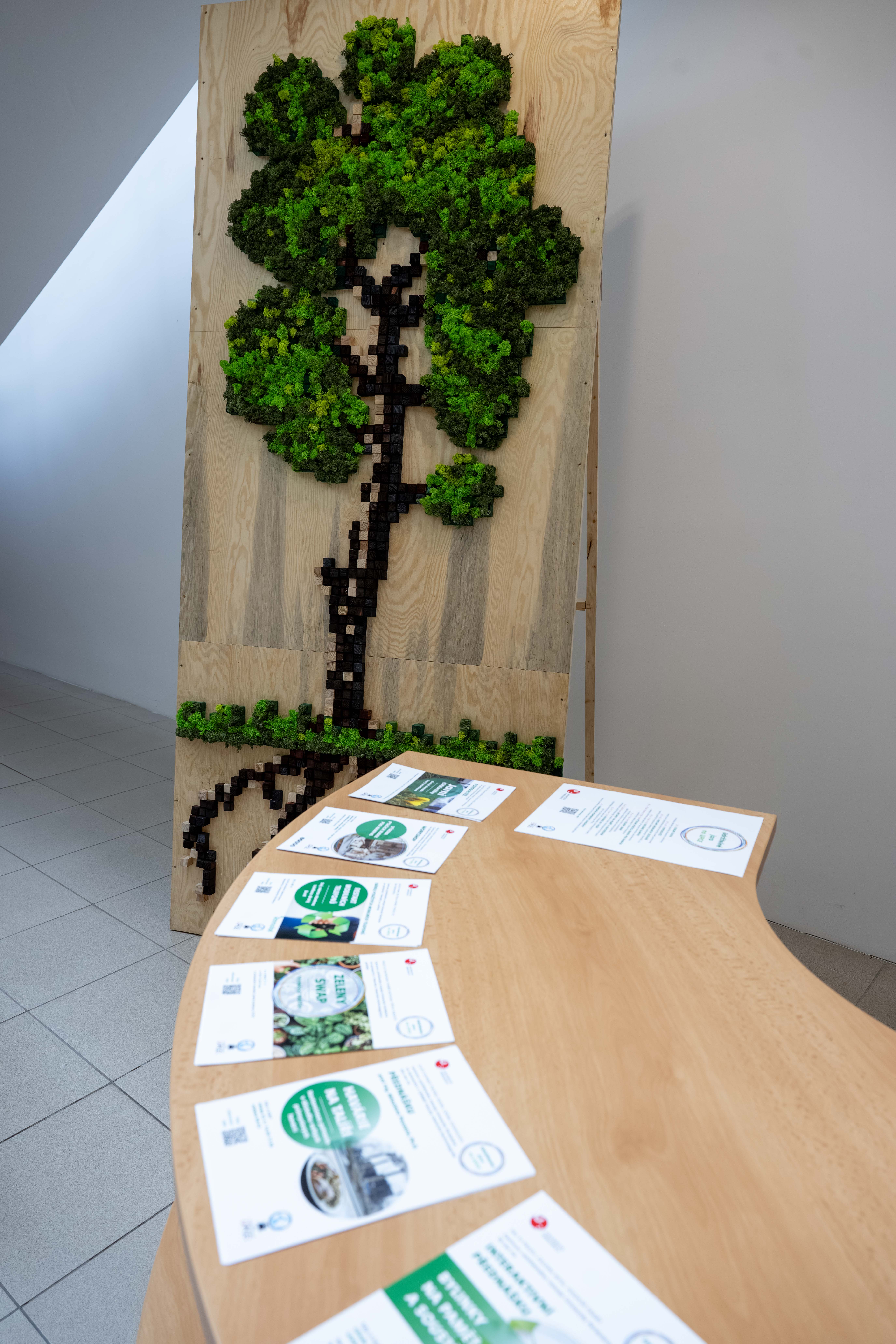 Plastika s názvem Strom života je vyrobena ze dřeva a stabilizovaného mechu. Spojení těchto přírodních materiálů symbolizuje růst, propojení a harmonii – hodnoty blízké jak vědeckému poznání, tak akademickému prostředí. Stabilizovaný mech zároveň přináší do interiéru přirozený prvek zeleně bez nutnosti údržby a podtrhuje ekologický rozměr celé instalace.