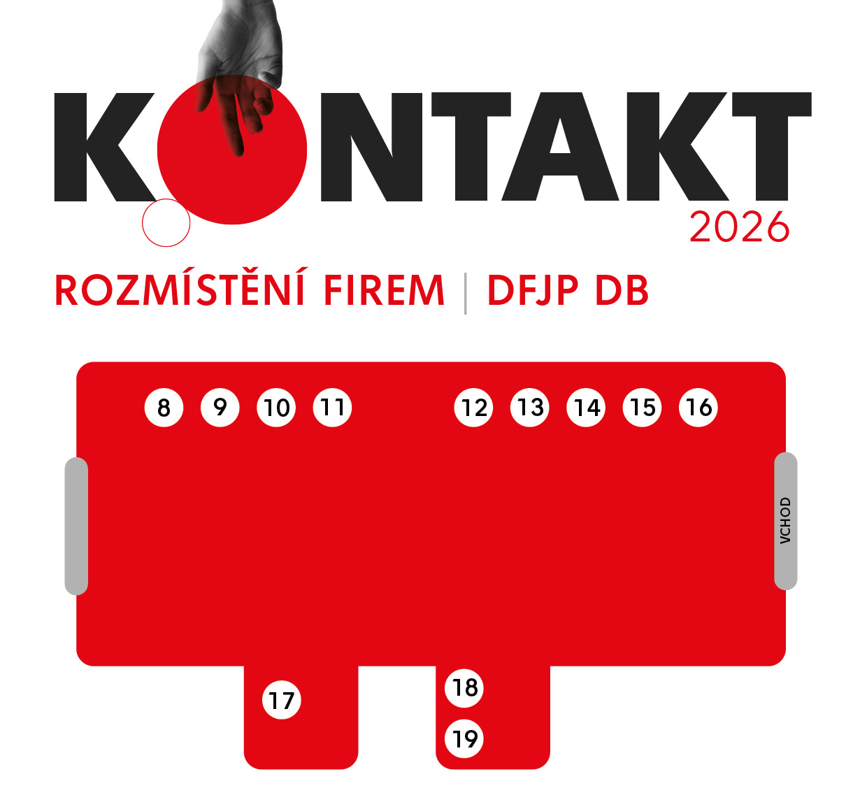 | 20.11.2025 9.1.2026 16.1.2026 6.2.2026 18.3.2026 | spuštění registrace nejpozdější ukončení registrace (v příp. naplnění kapacity ukončení i dříve) zaslání grafických podkladů do katalogu uzávěrka korektur v katalogu prezentace firem na veletrhu KONTAKT 2026 |