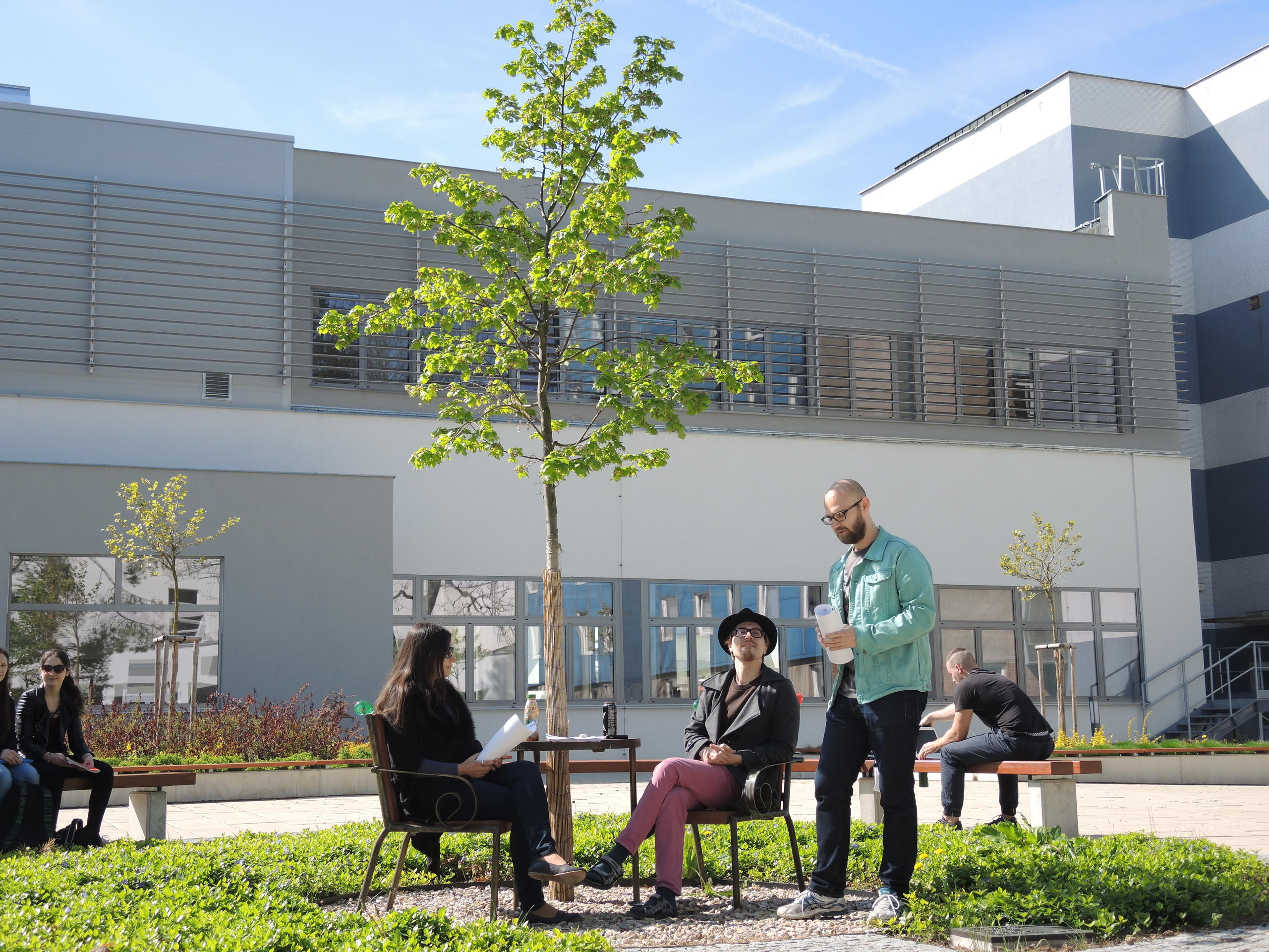 „Na lavičce sedí lidi vedle sebe a koukají do dálky a ten důvod byl, že jsem chtěl, aby se dívali do očí, takže jsou takhle ty židle postavené proti sobě a ten stoleček je proto, aby ta diskuse byla příjemná, aby se tam vešla ještě sklenička vína,“ vysvětlil autor lavičky profesor Bořek Šípek ke svému návrhu dvou laviček se stolkem a lípou uprostřed.