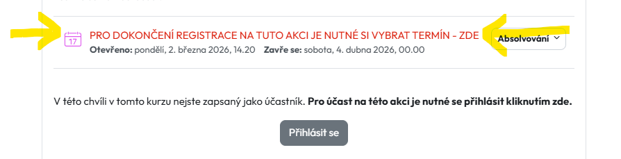 Po přihlášení v EDU portále je nutné ještě vybrat termín poradny: