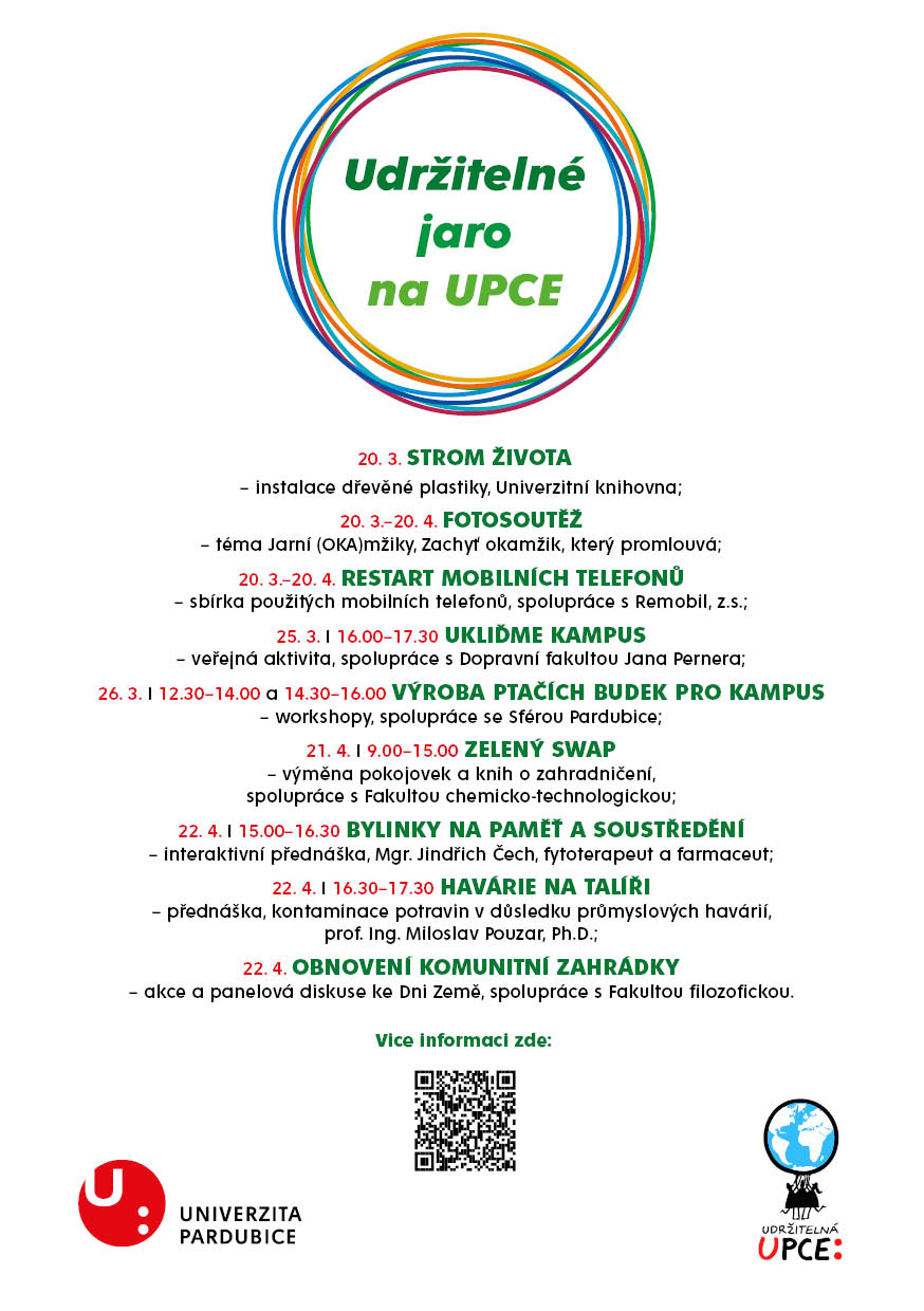 Udržitelné jaro na UPCE je sérií aktivit, které dávají prostor kreativitě, spolupráci i konkrétním činům v oblasti odpovědného přístupu k životnímu prostředí.